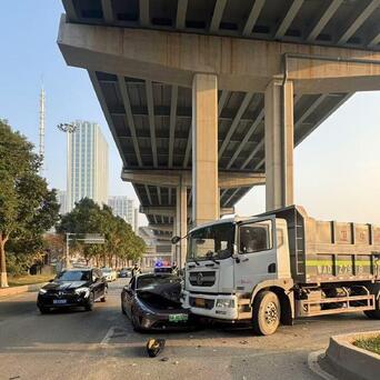 小米SU7和一辆卡车相撞。与之前的事故不同的是,这次车主并不是毫发无